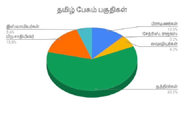 இந்து பாரம்பரிய பள்ளிகளில் 1822–25 ஆகிய ஆண்டுகளில் கிறிஸ்தவ ஆங்கிலேய வெள்ளைக்கார அரசின் கணக்கெடுப்பில் சூத்திரர் தீண்டத்தகாதவர் (பிற சாதியினர்) என்று கூறப்படும் மாணவர்களின் எண்ணிக்கை: